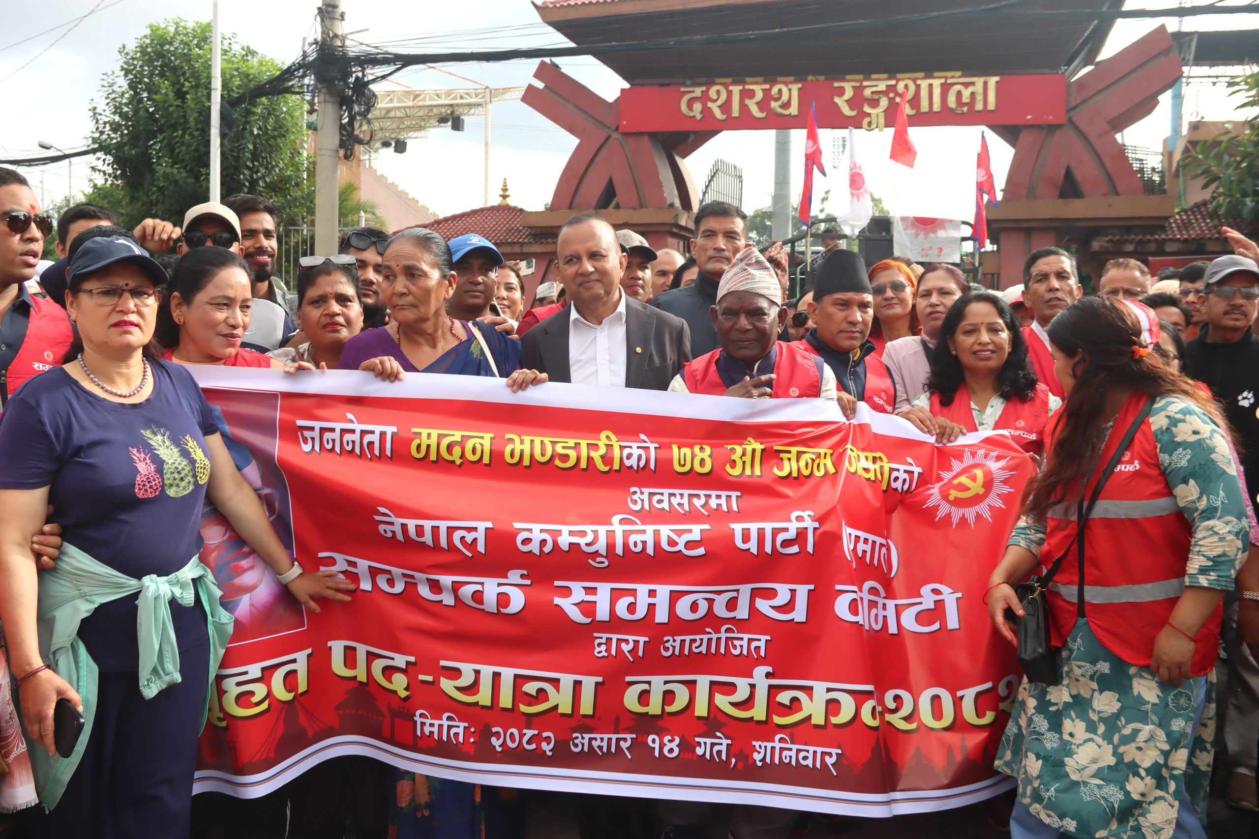एमाले र मदन भण्डारी फाउण्डेशनले आज विविध कार्यक्रम गरी जननेता भण्डारीको जन्मजयन्ती मनाउन थालेको हो । एमाले सम्पर्क समन्वय कमिटीले आज जयन्तीकै अवसरमा पदयात्रा गरेको छ । कमिटीको आयोजनामा आज ७ः३० बजेदेखि ८ः३० बजेसम्म त्रिपुरेश्वरदेखि दशरथरङ्गशालादेखि तीनकुनेसम्म पदयात्रा गरिएको कमिटीका सचिव आरसी लामिछानेले जानकारी दिनुभयो । पदयात्रामा पार्टी महासचिव शङ्कर पोखरेल, स्थायी कमिटी सदस्य लालबाबु पण्डित सहभागी हुनुहुन्थ्यो ।
