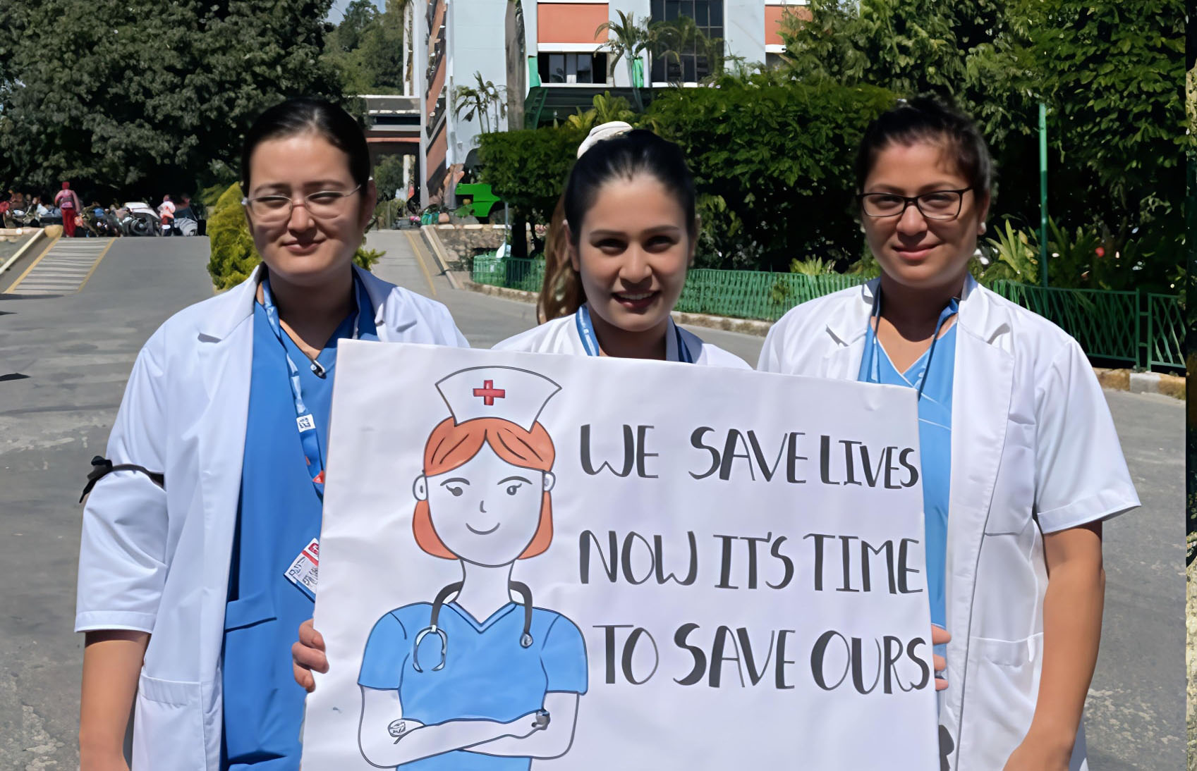 नर्सिङ संघको आह्वानमा नर्सहरूले कालोपट्टी बाँधेर काम गरिरहेका छन्। संघले स्वास्थ्य तथा जनसंख्या मन्त्रालयलाई मागपत्र पेश गर्दै तोकिएको समयभित्र माग पूरा नभए थप आन्दोलनका कार्यक्रम घोषणा गर्ने चेतावनी दिएको छ।