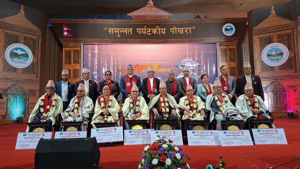 गण्डकी प्रदेशका मुख्यमन्त्री सुरेन्द्रराज पाण्डे र महानगरका प्रमुख धनराज आचार्यले बुधबार आयोजित समारोहमा उहाँहरूलाई जनही दुई लाख दुई हजार दुई सय दुई रुपियाँ, ताम्रपत्र र पदकसहित सम्मान गर्नुभएको हो ।