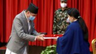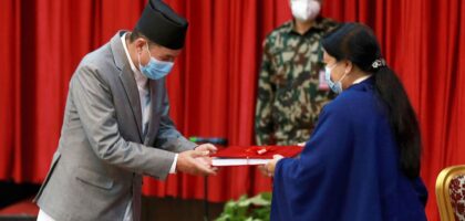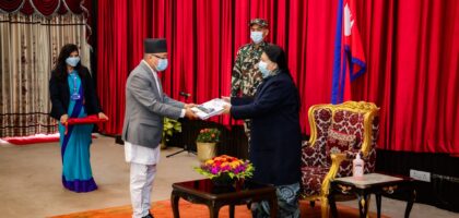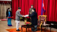 राष्ट्रपति विद्यादेवी भण्डारीसमक्ष प्रमुख निर्वाचन आयुक्त दिनेशकुमार थपलियाले नेपालको संविधानको धारा २९४ को उपधारा (१) बमोजिम निर्वाचन आयोगको आर्थिक वर्ष २०७७/०७८...