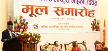 प्रधानमन्त्री शेरबहादुर देउवाले महिलालाई सामाजिक, आर्थिक, राजनीतिक र सांस्कृतिक अवसरहरूमा विना कुनै भेदभाव समान अवसर उपलब्ध गराउनु पर्ने बताउनुभएको छ ।...