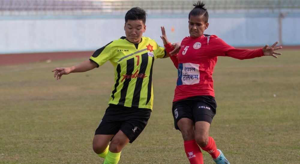 राष्ट्रिय महिला लिग फुटबलको उद्घाटन खेलमा त्रिभुवन आर्मी क्लब र नेपाल पुलिस क्लबले गोलरहित बराबरी खेलेको छ । काठमाडौंको त्रिपुरेश्वरस्थित दशरथ रंगशालामा सम्पन्न खेल ०–० मा टुगिंएको हो ।