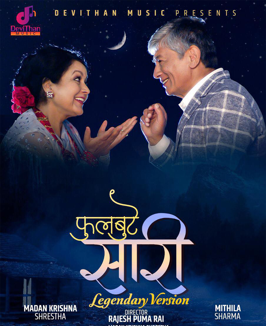 सो गीत बरिष्ठ कलाकार मदनकृष्ण श्रेष्ठको स्वरमा सार्वजनिक भएको हो । ‘फूलबुट्टे सारी सपक्क पारी’ गीत राजन राज सिवाकोटीको शब्द र संगीतमा मेल भर्शन, फिमेल भर्शन र बेबी भर्शनमा गाइएको गीत लिजेन्ड्री भर्सनमा भने मदनकृष्ण श्रेष्ठले गाएका हुन् । जस गीतमा गायक मदनकृष्ण श्रेष्ठ र बरिष्ठ अभिनेत्री मिथिला शर्माले अभिनय गर्नुभएको छ ।