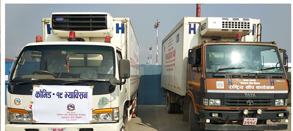 मन्त्रालयका सहप्रवक्ता डा अधिकारीले खोप विमानस्थलबाट टेकुस्थित चिस्यान केन्द्रमा भण्डारण गरिने जानकारी दिनुभयो । उक्त खोप यहि फागुन २३ गतेदेखि ५५ वर्ष माथिका ज्येष्ठ नागरिकलाई लगाइने छ । खोप टेकुस्थित चिस्यान केन्द्रबाट प्रदेश स्वास्थ्य आपूर्ति व्यवस्थापन केन्द्रमार्फत जिल्लास्थित स्वास्थ्य कार्यालयबाट देशभरिका खोप केन्द्रमा वितरण गरिने उहाँले बताउनुभयो ।