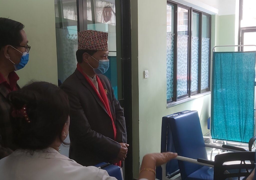 शुक्रवार अपरान्ह सम्बन्धित वार्डका प्रमुखहरु सहित ॐ अस्पतालमा पुग्नुभएका नगर प्रमुख शाक्यले अस्पतालस्थित खोप केन्द्रमा पुगेर नाम दर्ता देखी भ्याक्सिनेशन तथा अव्जर्भेशन कक्षको अवलोकन गर्नुभएको हो ।