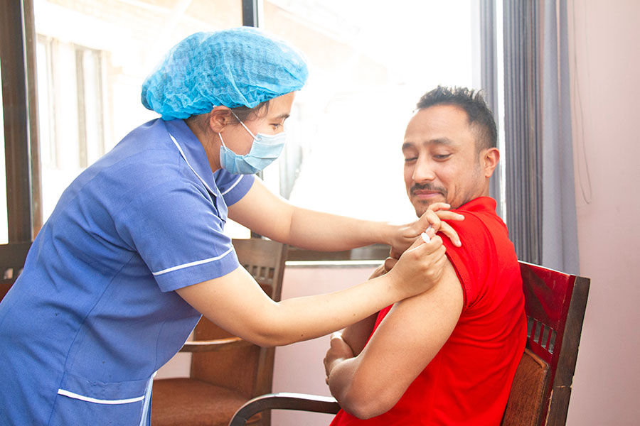 नेपाल सरकारले दोश्रो चरण अन्तर्गत व्यवस्था गरेको कोराना विरुद्धको राष्ट्रव्यापी अभियान अन्तर्गत यो खोप लगाएका हुन । उनीहरुले आज अपरान्ह काठमाडौं चावहिलस्थित ॐ हस्पिटल एण्ड रिसर्च सेन्टर स्थित खोप केन्द्रमा पुगेर खोप लगाएका हुन ।