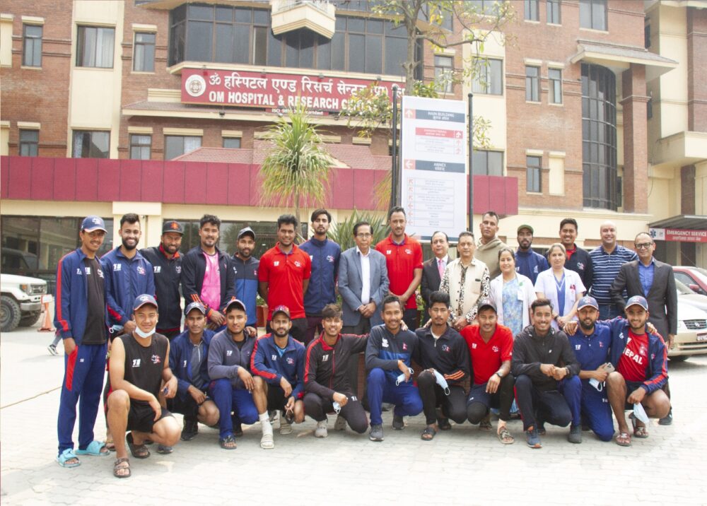 राष्ट्रिय क्रिकेट टोलीलाई ॐ हस्पिटलका अध्यक्ष डा. आनन्द प्रसाद श्रेष्ठ, प्रमुख कार्यकारी अधिकृत यम बहादुर महत तथा मेडिकल डाईरेक्टर डा. हरिश जोशीले स्वागत गर्नु भएको थियो । रासस