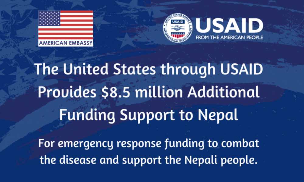 अमेरिका सरकारले आफ्नो दातृ निकाय युएसएआईडी मार्फत  कोरोनाको महामारी विरुद्ध लड्न नेपाल सरकारलाई ८५ लाख डलरको आर्थिक सहयोग प्रदान गर्ने घोषणा गरेको छ ।