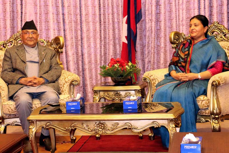 राष्ट्रपति विद्यादेवी भण्डारी र प्रधानमन्त्री केपी शर्मा ओलीबीच शीतल निवासमा भेटबार्ता भएको छ ।