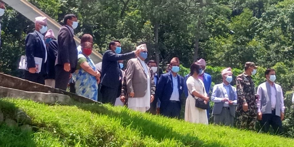 उहाँले बाढीबाट तहसनहस भएको मेलम्ची बजार र मेलम्ची खानेपानीको सुरुङको हवाई निरीक्षण पनि गर्नुभयो ।