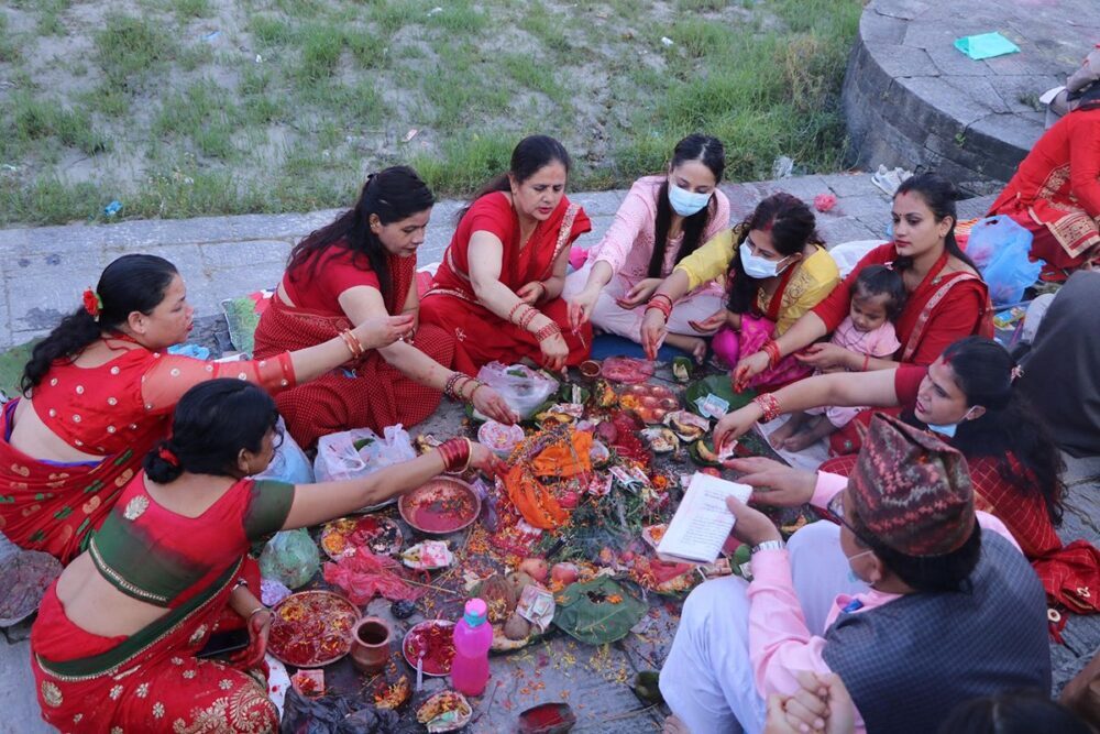 आज स्नान गरी पूजा आजा गरेपछि नरोपी उम्रेका अन्न सामा, कागुनो, कन्दमूल र कर्कला आदि खाई एक छाक हविष्य बस्नुपर्ने व्रतविधि छ ।