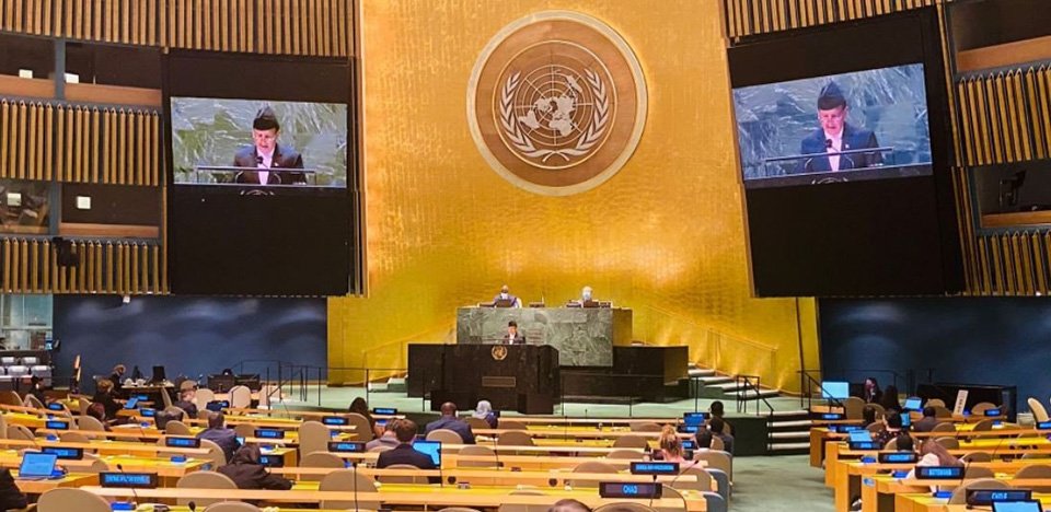 ‘आशाको माध्यमबाट प्रतिरोधका साथ कोभिड–१९ बाट पुनःस्थापना, दिगो पुनःनिर्माण, पृथ्वीको आवश्यकता पूरा गर्न तथा जनताका अधिकारलाई सम्मान गर्दै संयुक्त राष्ट्रसङ्घलाई पुनःजागृत गराउने’ विषयमा संयुक्त राष्ट्रसङ्घको ७६औँ महासभामा नेपालले जातीय बहुलसमाजहरूमा द्वन्द्वका जोखिम एवं तनाव अन्त्य गर्ने उत्तम औषधि लोकतन्त्र र वहुपक्षवाद भएका बताएको हो ।