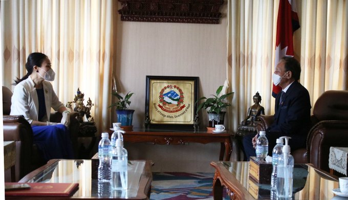 मन्त्रालयमा सोमवार भएको भेटमा उहाँहरुबीच नेपाल–चीनबीचको सम्बन्ध, कोभिड–१९ विरुद्धको खोप सहयोगलगायत विविध विषयमा छलफल भएको मन्त्रालयले जनाएको छ । मन्त्री खड्काले यही असोज ६ गते मन्त्रालयको जिम्मेवारी सम्हाल्नुभएको हो ।