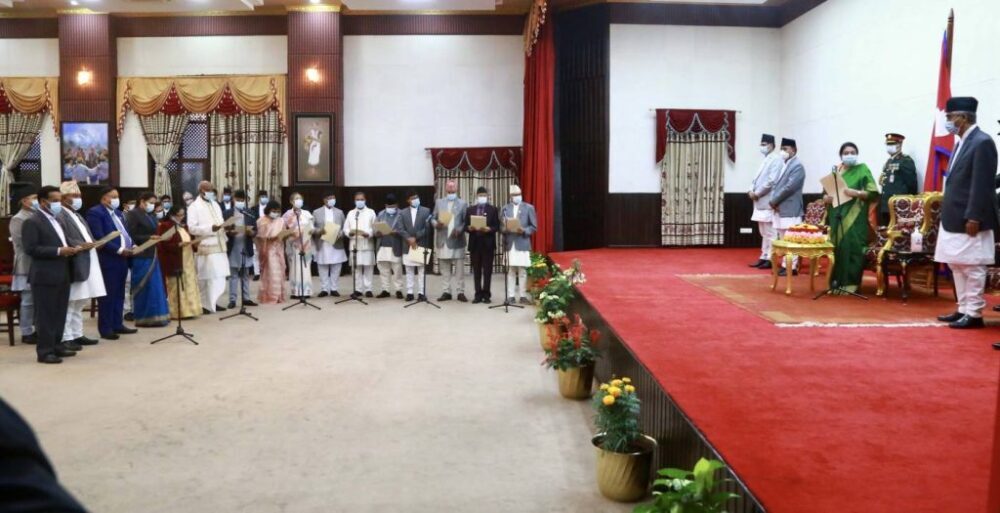 राष्ट्रपति भण्डारीले प्रधानमन्त्री शेरबहादुर देउवाको सिफारिसमा नेपालको संविधानको धारा ७६ को उपधारा (९) तथा धारा ७८ को उपधारा(१ ) बमोजिम आज नियुक्ति, हेरफेर र कार्य विभाजन गरी मन्त्रिपरिषद् गठन गर्नुभएको थियो ।