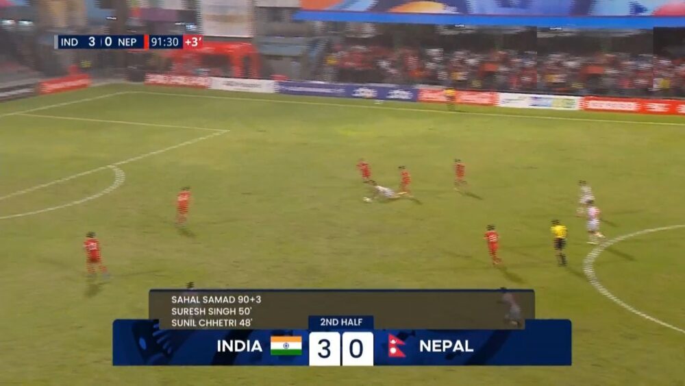 पहिलो हाफमा बराबरीमा रोकिएको खेल दोस्रो हाफमा भारतले लगातार २ गोल गरेको थियो । खेलको ८९औं मिनेटमा भारतले पुनः गोल गरेर अग्रतालाई ३–० बनायो । यसअघि भएको खेलमा भारतसँग नेपाल १–० गोल अन्तरले पराजित भएको थियो ।