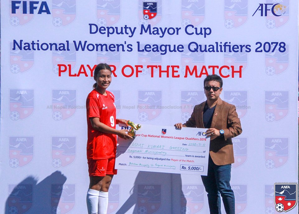 बागमतीका लागि राष्ट्रिय खेलाडी रश्मीकुमारी घिसिङले पाँच गोल गर्नुभयो । अर्की राष्ट्रिय खेलाडी रेनुका नगरकोटीले पनि दुई गोल गर्नुभयो । सदिमा ब्लोन र अनु राईले पनि एक–एक गोल गरी गोलकर्ताको सूचीमा आआप्mनो नाम लेखाउनुभयो ।