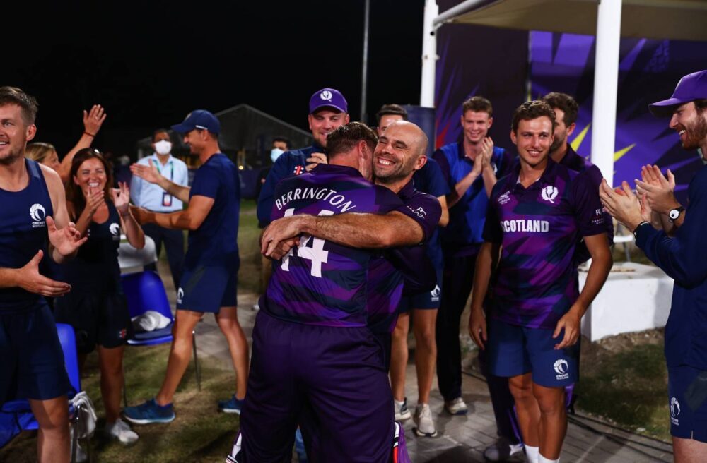 समूह ‘बी’को अन्तिम खेलमा स्कटल्यान्डले घरेलु टोली ओमानलाई ८ विकेटले पराजित गर्दै शीर्ष स्थान हात पारेको हो । जितका लागि १ सय २३ रनको लक्ष्य पछ्याएको स्कटल्यान्डले १७ ओभरमा २ विकेटको क्षतिमा जित हात पार्याे । जितमा कप्तान काइल कोट्जरले सर्वाधिक ४१ रनकोे योगदान दिए । म्याथ्यु क्रस २६ रनमा अविजित रहे ।
