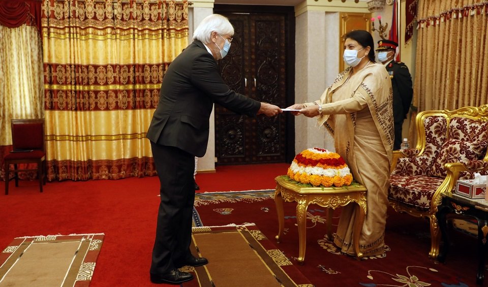 राष्ट्रपति विद्यादेवी भण्डारीसमक्ष नेपालका लागि ब्राजिल, इटाली, माल्टा र दक्षिणअफ्रिकाका नवनियुक्त राजदूतले आ–आफ्नो ओहोदाको प्रमाणपत्र पेस गर्नुभएको छ । राष्ट्रपति भवन, शीतल निवासमा आज अपराह्न आयोजित विशेष समारोहमा नेपालका लागि ब्राजिलका आवासीय राजदूत कार्लोस अल्वेर्टो माइकल्सेन डेन हार्टोगसहित इटाली, माल्टा र दक्षिणअफ्रिकाका गैरआवासीय राजदूतहरू क्रमशः भिन्चेञ्जो डि लुक्का, रुबिन गाउची र जोएल सिबुसिसो एन्डेबेलेले आ–आफ्नो ओहोदाको प्रमाणपत्र प्रस्तुत गर्नुभएका हो ।