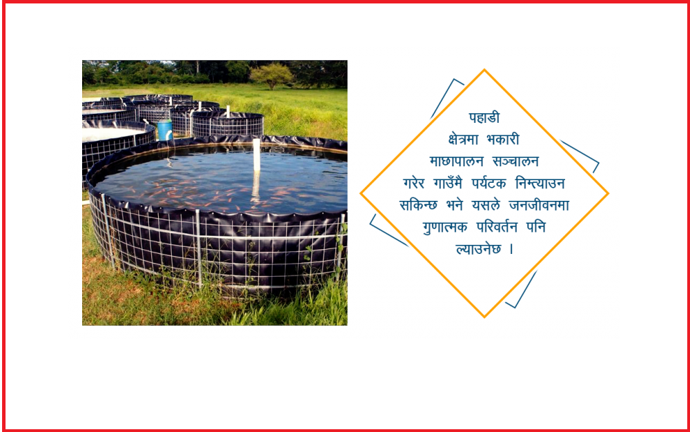 भकारी माछापालनलाई सही व्यवस्थापनका साथ सञ्चालन गरे पर्यटक गाउँमै आउनेछन्। जनजीवनमा गुणात्मक परिवर्तन आउनेछ। पहाडी क्षेत्रमा शहरहरूको विकासमा मद्दत पुग्नेछ।