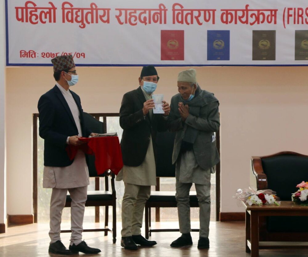 विभागले बुधवार काठमाडौँमा आयोजना गरेको कार्यक्रममा परराष्ट्र मन्त्री डा. खड्काले शताब्दी पुरुष डा. सत्यमोहन जोशीलाई पहिलो विद्युतीय राहदानी प्रदान गर्दै विद्युतीय राहदानी वितरण कार्यको शुभारम्भ गर्नुभएको हो ।