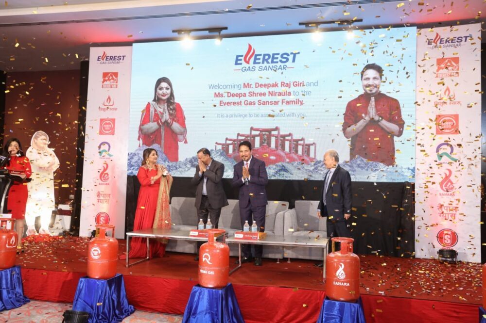 एभरेष्ट ग्यास संसारले चर्चित जोडी दीपकराज गिरी र दीपाश्री निरौलालाई आधिकारिक रूपमा ब्रान्ड एम्बेसडरमा नियुक्त गरेको घोषणा गरेको छ। हयात प्लेस होटल काठमाण्डौंमा आयोजित एक समारोहबीच मिडिया र सार्वजनिक व्यक्तित्वहरूको उपस्थितिमा साे घोषणा गरिएको थियो।