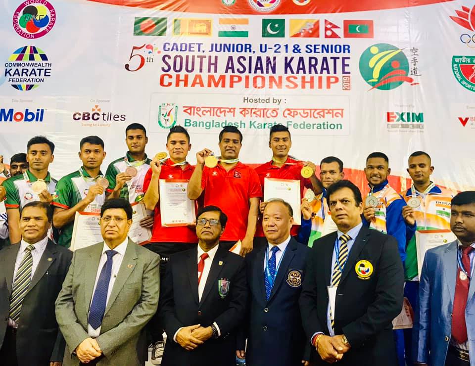 पाँचौ दक्षिण एसियन क्याडेड, जुनियर, यु–२१ र सिनियर कराते च्याम्पियनसिपमा नेपाली सिनियर कराते टोली टिम च्याम्पियन बन्न सफल भएको छ । नेपाली सिनियर टोली ८ स्वर्ण, ३ रजत र ८ कास्यपदक गरी कुल १९ पदक जित्दै टिम च्याम्पियन बन्न सफल भएको हो ।