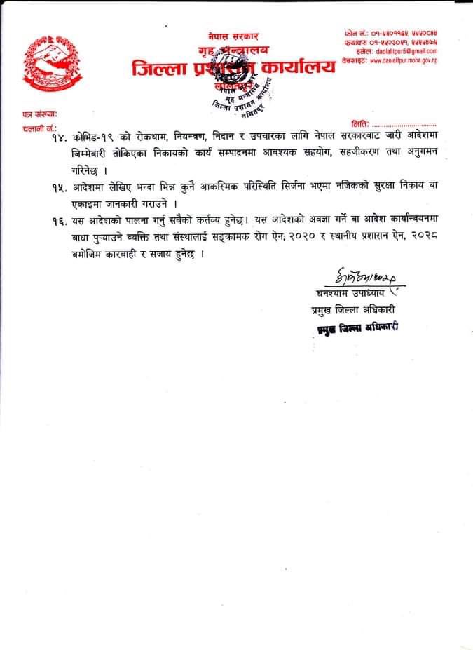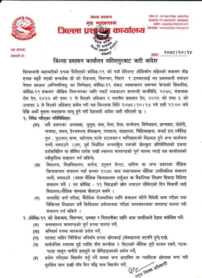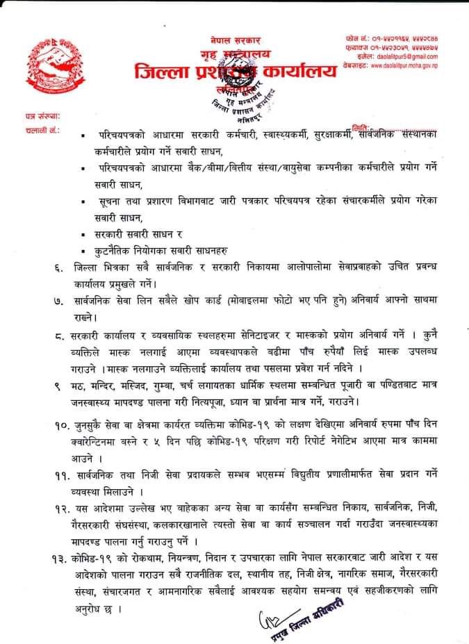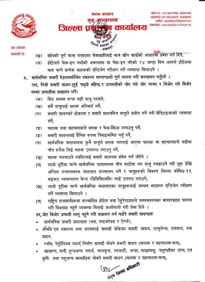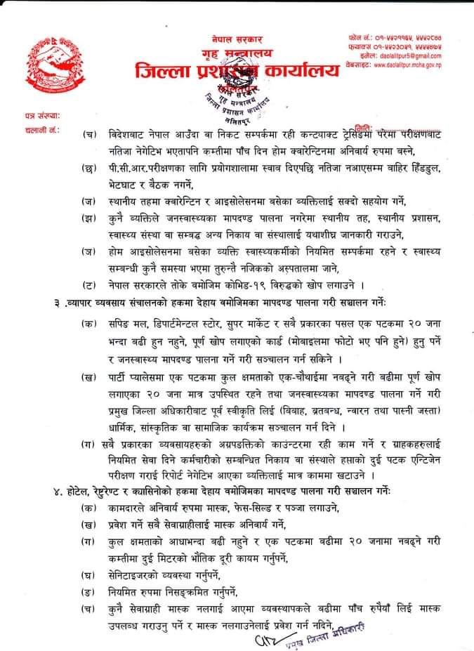 कोरोना नियन्त्रणका लागि जारी गरिएका अन्य स्वास्थ्य मापदण्ड भने यथावत छन्। जनस्वास्थ्यका मापदण्ड कडाइका साथ पालना गर्न लगाइने भएको छ।