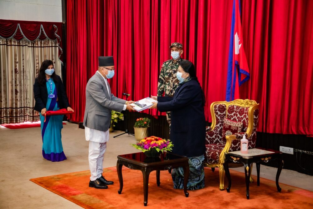 राष्ट्रपति विद्यादेवी भण्डारीसमक्ष प्रमुख निर्वाचन आयुक्त दिनेशकुमार थपलियाले नेपालको संविधानको धारा २९४ को उपधारा (१) बमोजिम निर्वाचन आयोगको आर्थिक वर्ष २०७७/०७८ को वार्षिक प्रतिवेदन पेश गर्नुभएको छ ।