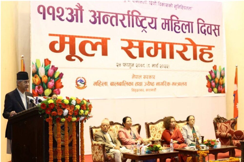 प्रधानमन्त्री शेरबहादुर देउवाले महिलालाई सामाजिक, आर्थिक, राजनीतिक र सांस्कृतिक अवसरहरूमा विना कुनै भेदभाव समान अवसर उपलब्ध गराउनु पर्ने बताउनुभएको छ ।