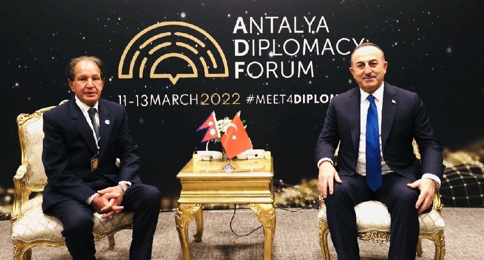 अन्तालिया कूटनीतिक मञ्चमा भाग लिने नेपाली प्रतिनिधिमण्डलको नेतृत्व गर्दै हाल टर्कीको अन्तालियामा रहनुभएका परराष्ट्रमन्त्री डा. नारायण खड्का र गणतन्त्र टर्कीका विदेशमन्त्री मेभलुत काभुसोग्लुसँग बिहीबार द्विपक्षीय भेटवार्ता भएको छ ।