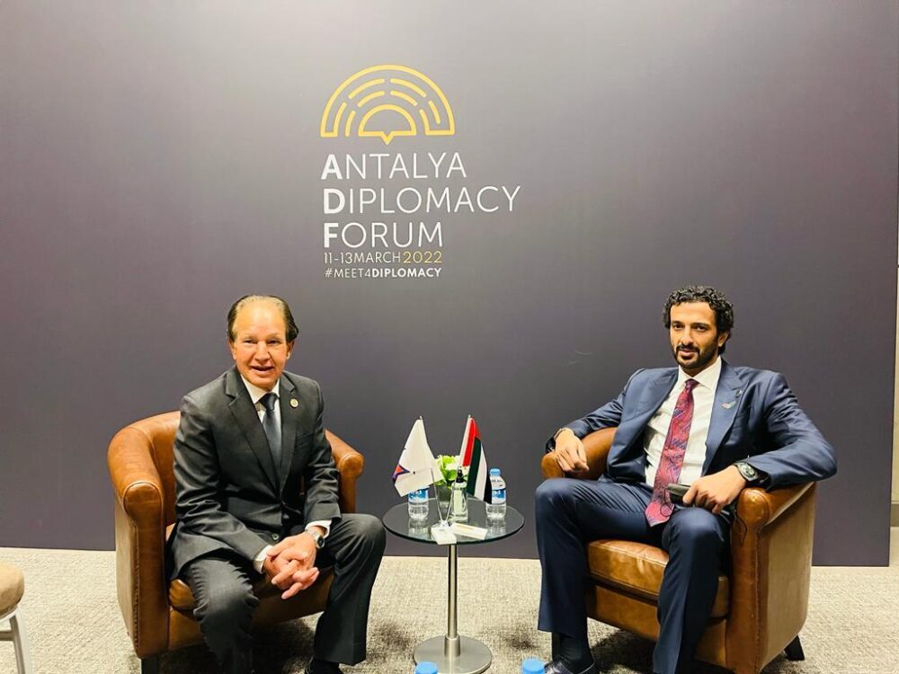 अन्तालिया कूटनीति मञ्चमा भाग लिने नेपाली प्रतिनिधिमण्डलको नेतृत्व गर्दै टर्कीको अन्तालियामा रहनुभएका परराष्ट्र मन्त्री डा नारायण खड्का र संयुक्त अरब इमिरेट्स (युएई)का अर्थमन्त्री अब्दुल्ला बिन तक अल मारीबीच द्विपक्षीय भेटवार्ता भएको छ ।