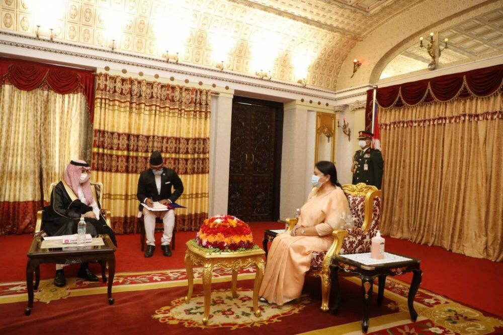 राष्ट्रपति कार्यालय, महाराजगञ्जमा भएको भेटमा नेपाल र साउदी अरबबीचको सम्बन्धका विविध पक्षका साथै पारस्परिक हित एवं चासोका विषयमा विचारविमर्श भएको थियो । त्यस अवसरमा राष्ट्रपति कार्यालय र परराष्ट्र मन्त्रालयका उच्च अधिकारीहरूको उपस्थिति थियो ।