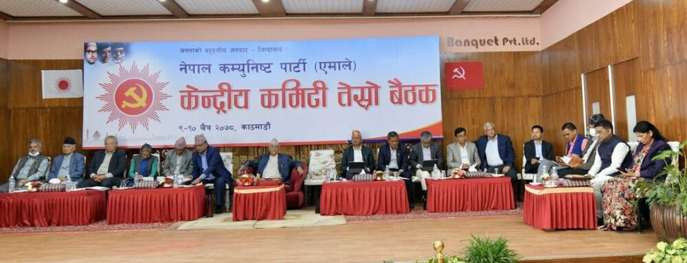 नेकपा (एमाले) को केन्द्रीय कमिटीको तेस्रो बैठक आसन्न स्थानीय तहको निर्वाचनका लागि उत्साहका साथ लाग्न नेता–कार्यकर्तालाई निर्देशन दिँदै आज सम्पन्न भएको छ ।