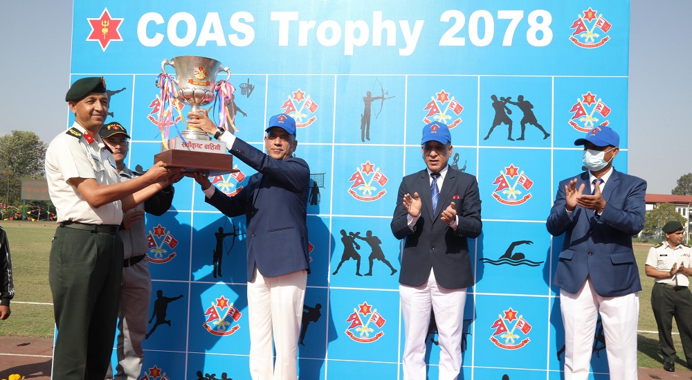 यही चैत्र १६ गतेबाट शुरु भएको प्रधान सेनापति ट्रफि २०७८ खेलकुद प्रतियोगिता शुक्रबार सम्पन्न भएको छ । जड़ी अड्डास्थित खेल मैदानमा प्रधान सेनापति महारथी प्रभुराम शर्माले समापन गर्नु भएको हो ।