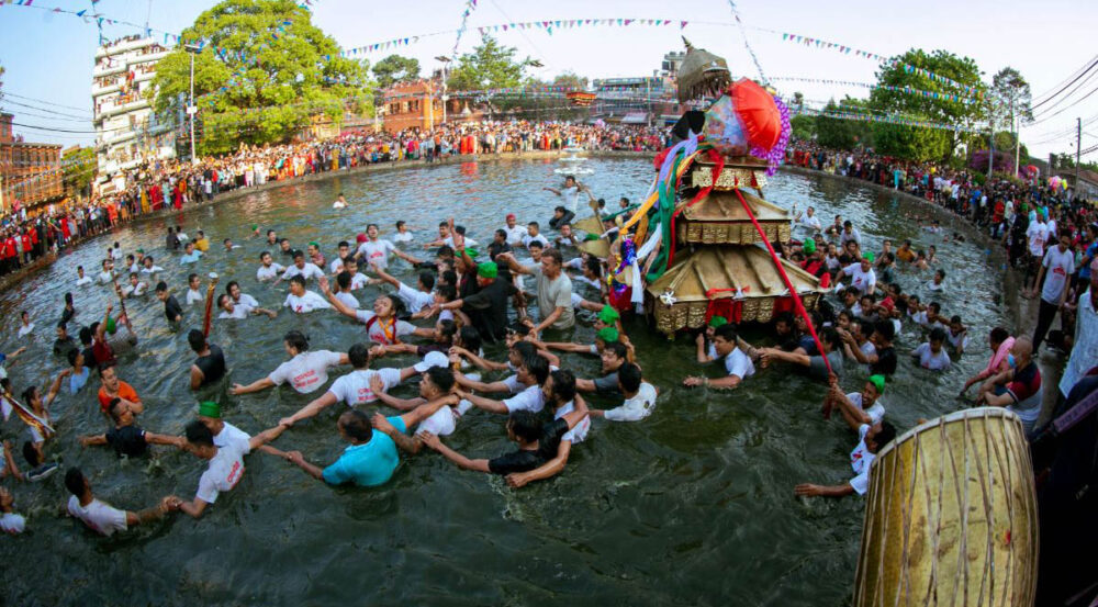यसरी गहना पोखरीमा टुँडाल देवीको खटलाई पोखरीभित्र तीनपटक परिक्रमा गराएपछि देवीको गहना खोज्ने गरिन्छ। -रासस