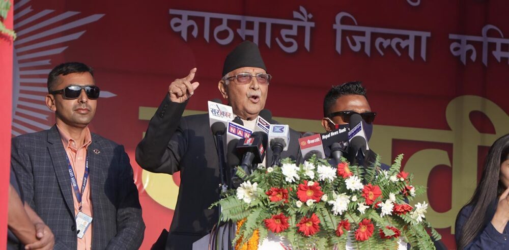 एमाले नेतृत्वको सरकारले गरेका विभिन्न कामको चर्चा गर्दै ओलीले देशभर एमालेको पक्षमा लहर चलेको उल्लेख गर्नुभयो। अध्यक्ष ओलीले निर्वाचन शान्तिपूर्ण ढंगले सम्पन्न गर्नुपर्ने विषयमा सबैको ध्यानाकर्षण हुनुपर्ने उल्लेख गर्नुभयो।