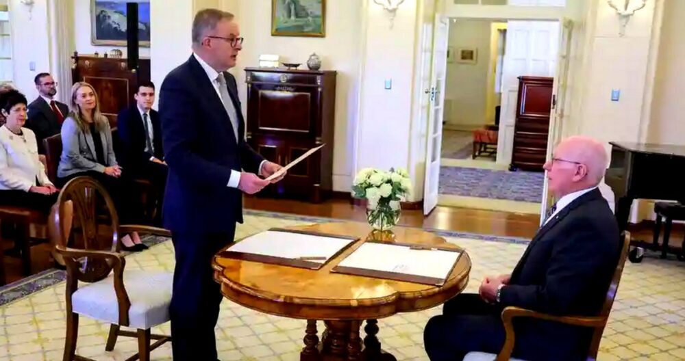 अष्ट्रेलियाका नवनिर्वाचित प्रधानमन्त्री एन्थोनी अल्बानीले सोमबार शपथ लिनुभएको छ । गत शनिबार भएको निर्वाचनमा सत्तारुढ गठबन्धनलाई पराजित गर्दै विजयी हुनुभएका लेबर पार्टीका नेता अल्बानीले अष्ट्रेलियाको ३१औँ प्रधानमन्त्रीका रुपमा सपथ लिनुभएको हो ।