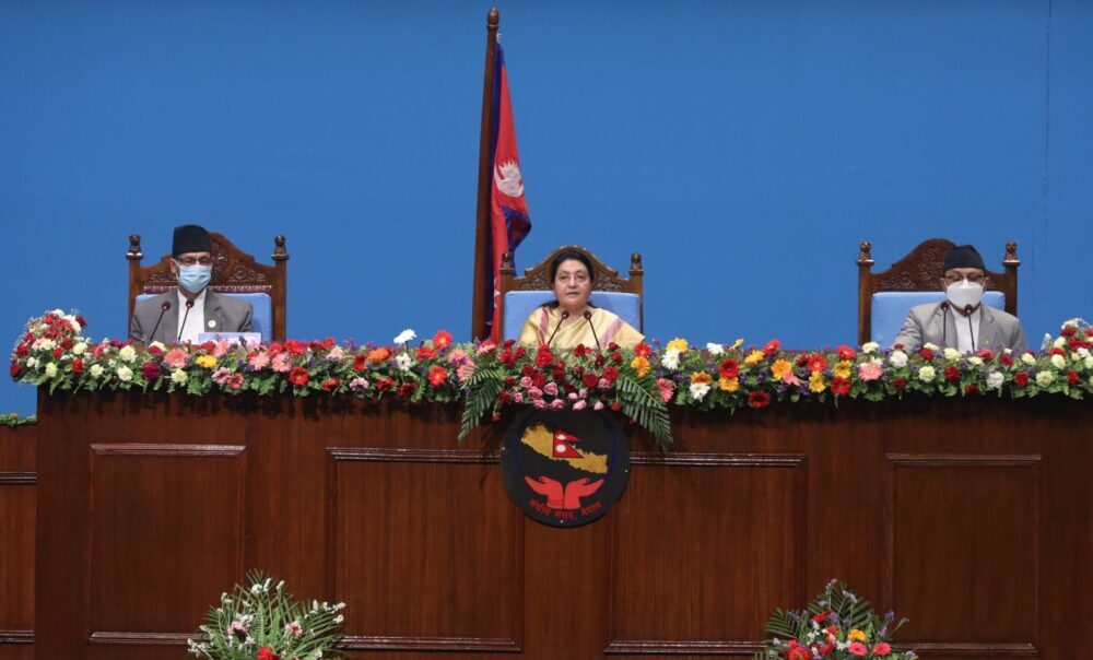 राष्ट्रपति विद्यादेवी भण्डारीले आज सङ्घीय संसद्को संयुक्त बैठकमा आर्थिक वर्ष २०७९/८० का लागि सरकारको नीति तथा कार्यक्रम प्रस्तुत गर्नुभएको छ ।