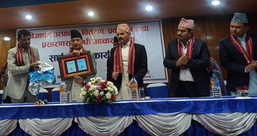 उहाँले विज्ञापन क्षेत्रलाई स्वस्थ र मर्यादित बनाउनका लागि जारी गरिएको सो आचारसंहिताको प्रभावकारी कार्यान्वयन नभएसम्म त्यसलाई ऐतिहासिक र महत्वपूर्ण भन्न नसकिने पनि स्पष्ट पार्नु भयो ।
