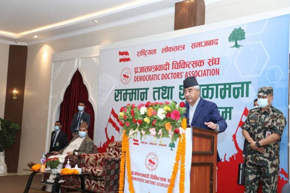 नेपाली काँग्रेसको शुभेच्छुक संस्था प्रजातन्त्रवादी चिकित्सक सङ्घले आज लैनचौर ब्याङ्वेटमा आयोजना गरेको ‘सम्मान तथा शुभकामना आदानप्रदान’ कार्यक्रममा उहाँले संविधानले स्वास्थ्य र शिक्षा क्षेत्रलाई मौलिक अधिकारका रूपमा ग्यारेन्टी गरेको बताउनुभयो ।
