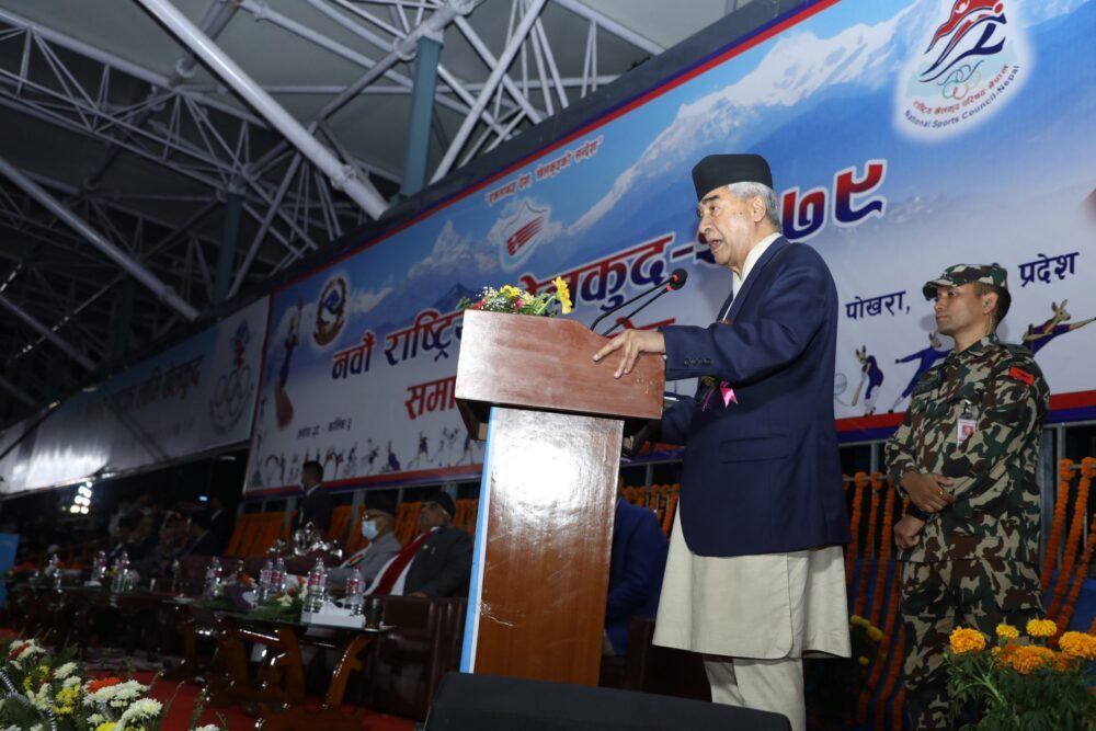 प्रधानमन्त्री शेरबहादुर देउवाले खेलकुद क्षेत्रलाई व्यवस्थित बनाउन सरकार प्रतिबद्ध भएको बताउनुभएको छ । नवौँ राष्ट्रिय खेलकुद प्रतियोगिताको पोखरामा आयोजित समापन समारोहलाई सम्बोधन गर्दै उहाँले नेपाल सरकारले विभिन्न सीमा र अप्ठ्याराका बाबजुद खेलकुदलाई प्राथमिकता दिइरहेको बताउनुभयो ।