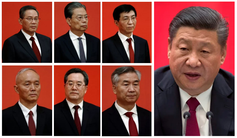 बेइजिङस्थित ग्रेट हल अफ द पिपलको भव्य रातो मञ्चमा आइतबार सी चिनफिङ स्वदेशी र विदेशी पत्रकारतर्फ फर्किएर हात हल्लाउँदै अग्रपंक्तिमा उक्लिए। उनलाई पछ्याउँदै ६ जना उच्च अधिकारी पनि मञ्चमा उक्लिए र सीलाई मध्यभागमा पारेर दायाँ-बायाँ उभिए। यो चीनलाई आगामी पाँच वर्षसम्म नेतृत्व गर्ने सात शक्तिशाली पोलिटब्यूरो स्थायी समिति सदस्यको एकसाथ पहिलो सार्वजनिक कार्यक्रम थियो।