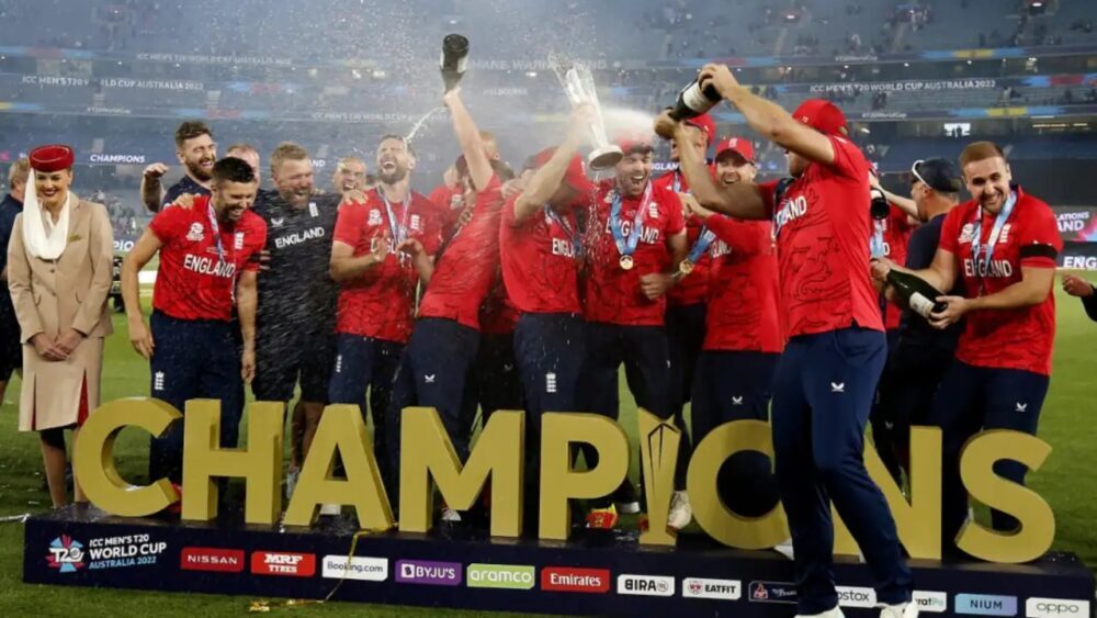 आइसिसी टी–२० विश्वकप क्रिकेटको उपाधि इङ्गल्यान्डले जितेको छ । अष्ट्रेलिया स्थित मेलबर्न क्रिकेट मैदानमा आइतबार भएको फाइनल खेलमा इङ्गल्यान्डले पाकिस्तानलाई पाँच विकेटले हरायो ।