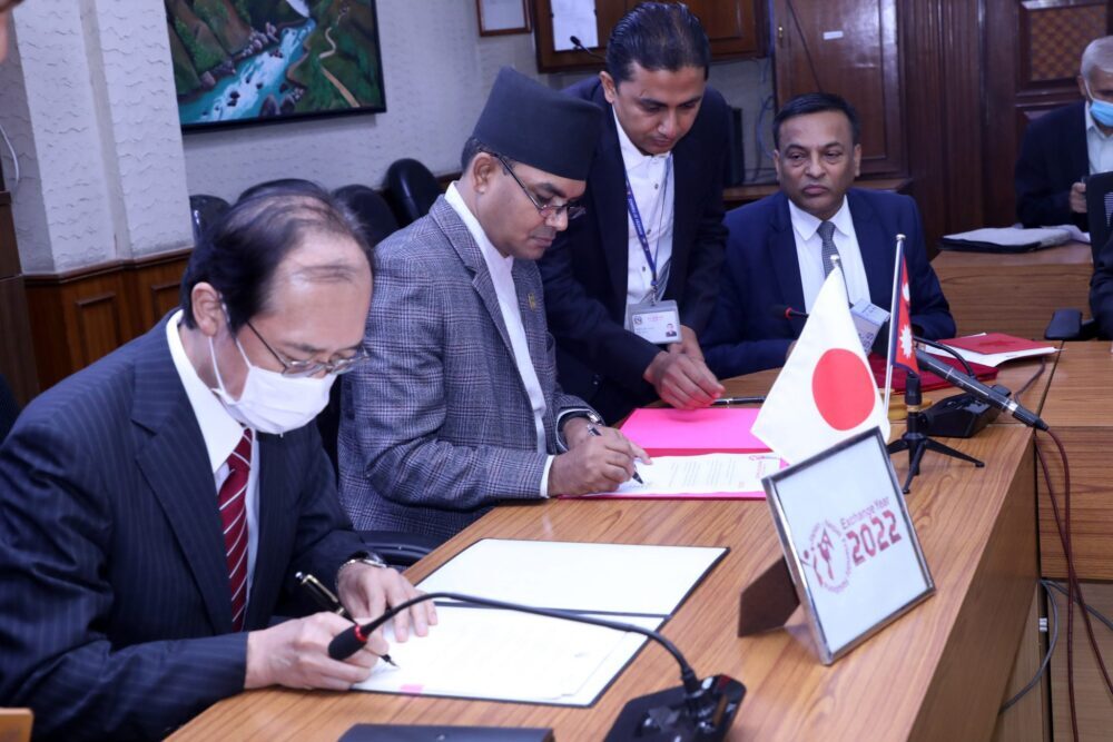 नेपालकोतर्फबाट अर्थसचिव कष्णहरि पुष्कर र सहसचिव ईश्वरीप्रसाद अर्याल तथा जापानकोतर्फबाट यहाँस्थित राजदूत किकुता युताका र जाइका नेपालका प्रमुख प्रतिनिधि ओकुबो अकिमित्सुले अर्थ मन्त्रालयमा अनुदान तथा ऋण सहयोगसम्बन्धी सम्झौतापत्रमा हस्ताक्षर गर्नुभयो ।