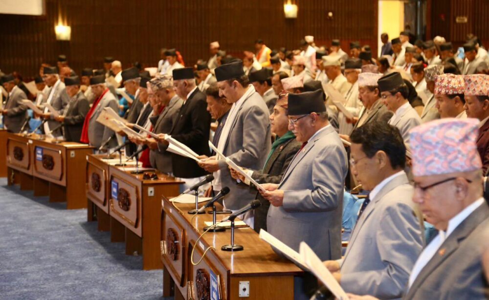 प्रतिनिधिसभाका ज्येष्ठ सदस्य पशुपति शमशेर जबराले नवनिर्वाचित सांसदहरुलाई पद तथा गोपनीयताको शपथ गराएका छन् ।