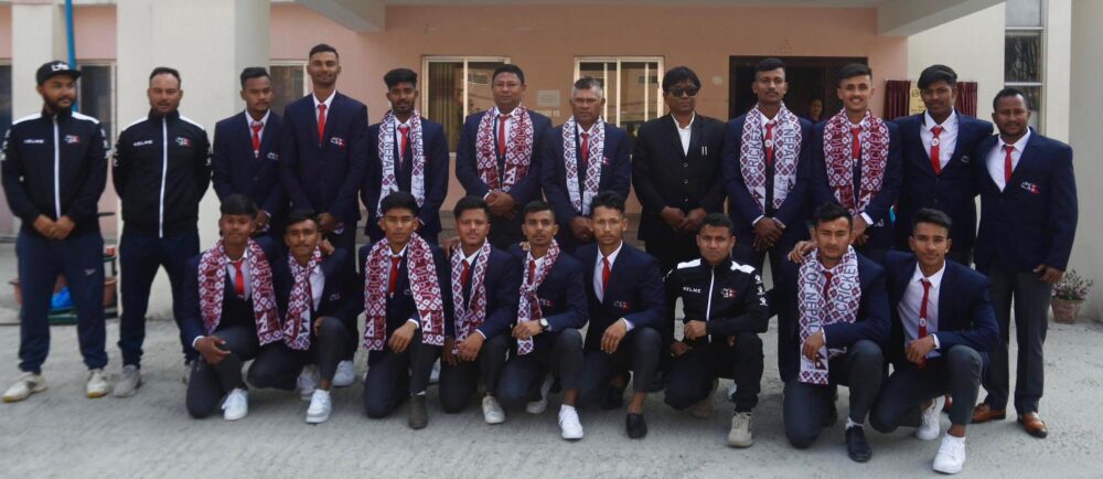 संयुक्त अरब इमिरेट्स (युएई) मा आयोजना हुने आइसिसी १९ वर्षमुनि (यू–१९) पुरुष विश्वकपको एसिया क्षेत्र छनोट प्रतियोगिता खेल्न जाने नेपाली टोलीलाई आज बिदाइ गरिएको छ । नेपाल क्रिकेट सङ्घ (क्यान) द्वारा आज यहाँ आयोजित कार्यक्रममा राष्ट्रिय खेलकुद परिषद् (राखेप) का सदस्य सचिव टङ्कलाल घिसिङ, क्यानका अध्यक्ष चतुरबहादुर चन्दलगायतले युएई जाने नेपाली टोलीलाई सफलताको शुभकामना दिँदै बिदाइ गर्नुभयो ।