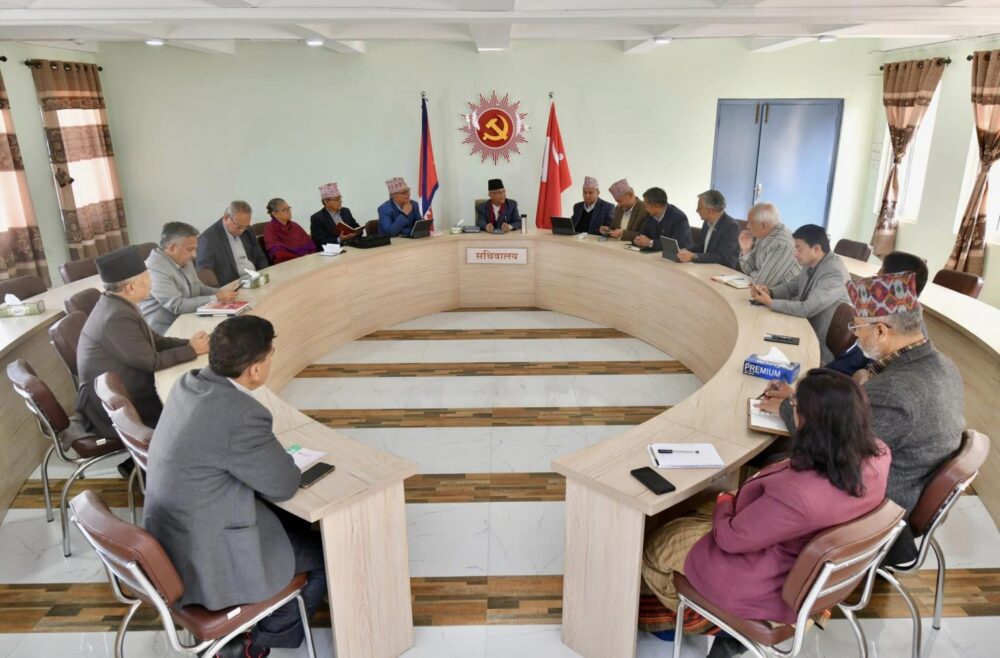 आज बिहान बसेको एमाले सचिवालय बैठकले राष्ट्रपति निर्वाचनसम्म सरकारबाट नबाहिरिने निर्णय लिएको हो ।