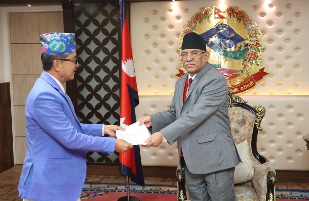 आज दिउँसो प्रधानमन्त्री निवास बालुवाटारमा पुगेर उहाँहरूले प्रधानमन्त्री पुष्पकमल दाहाल ‘प्रचण्ड’ समक्ष राजीनामा बुझाउनुभएको हो ।