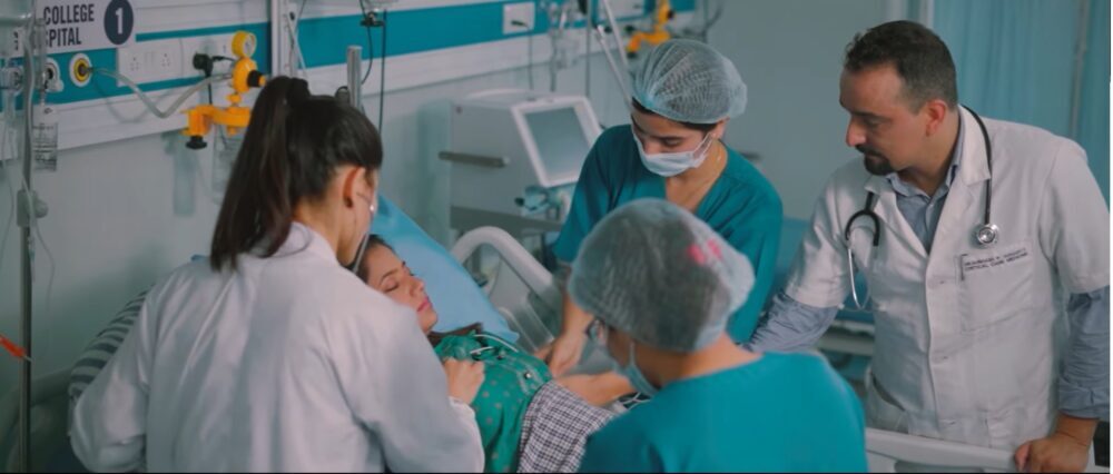 म्युजिक भिडियोमा त्रिवि शिक्षण अस्पतालको क्रिटिकल केयर विभागका प्रमुख प्रा. डा. आचार्यसँगै लोकप्रिय अभिनेत्री केकी अधिकारीको जिवन्त अभिनय गरेकी छन् ।
