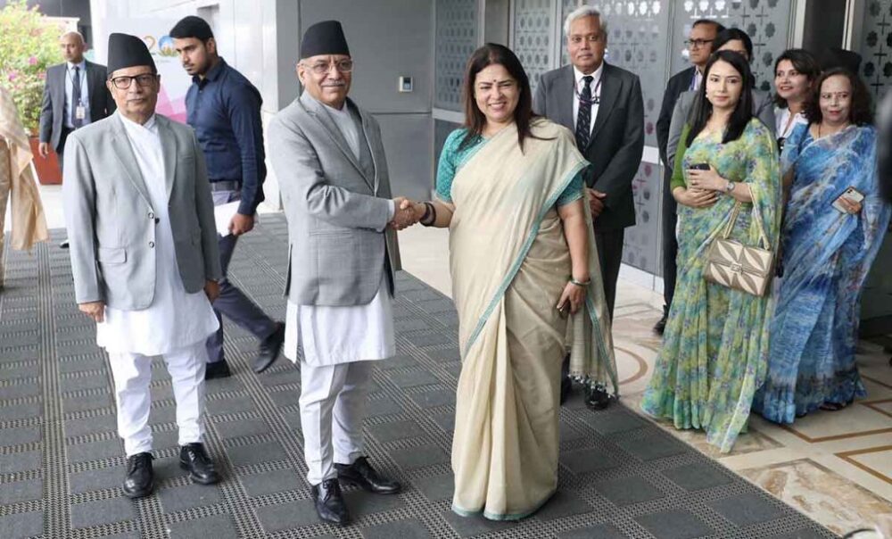 प्रधानमन्त्री दाहाललाई नयाँ दिल्लीस्थित इन्दिरा गान्धी अन्तर्राष्ट्रिय विमानस्थलमा भारतका सङ्घीय विदेश मामिला तथा संस्कृति राज्यमन्त्री मीनाक्षी लेखीले स्वागत गर्नुभएको थियो ।